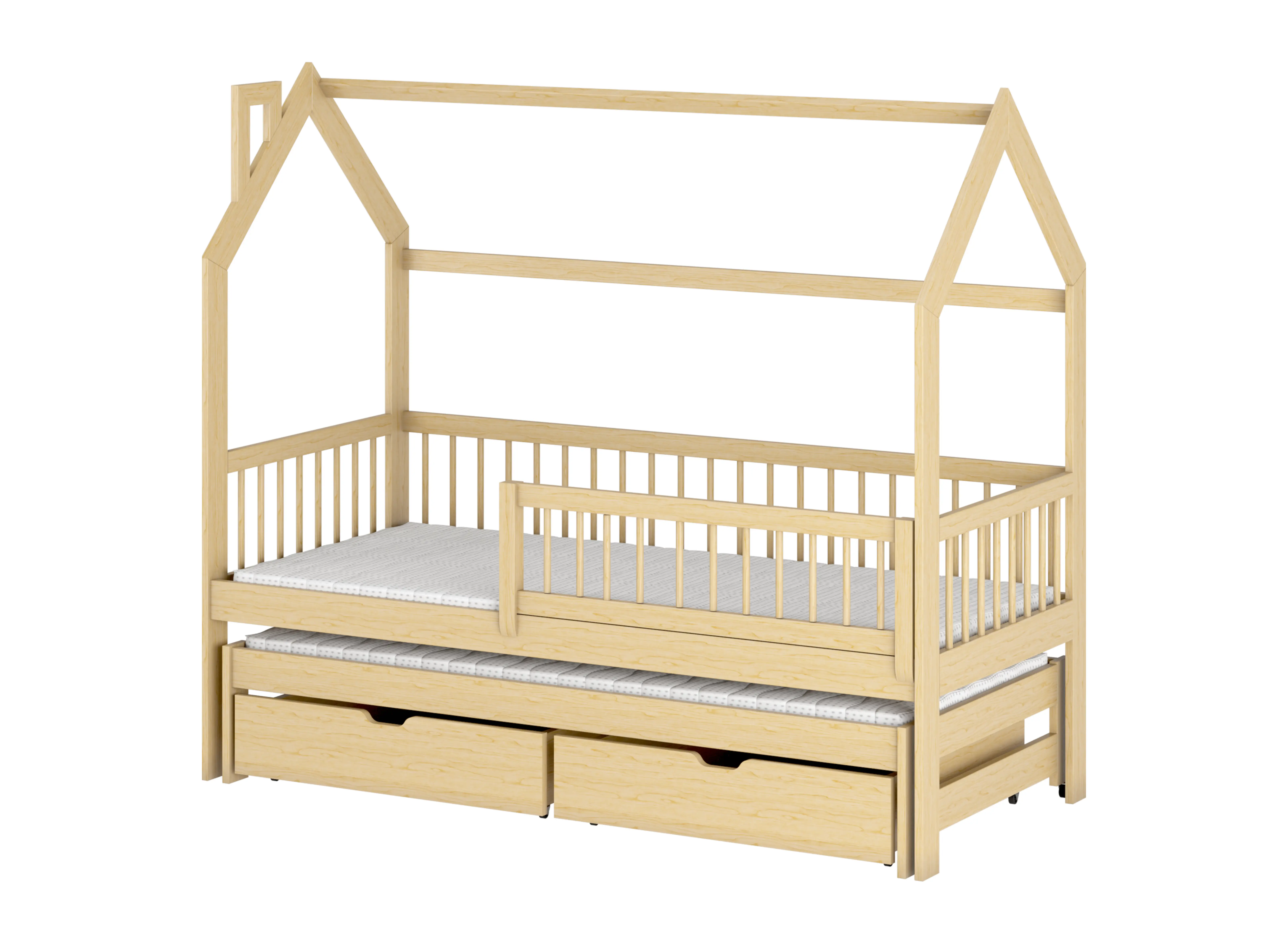 The PAPI 80×170 pine house bed brings warmth, natural charm, and cosiness into the children's room. Its beautiful wood grain makes the interior feel friendly and calming. Pine is perfect for parents who value natural materials and timeless style.