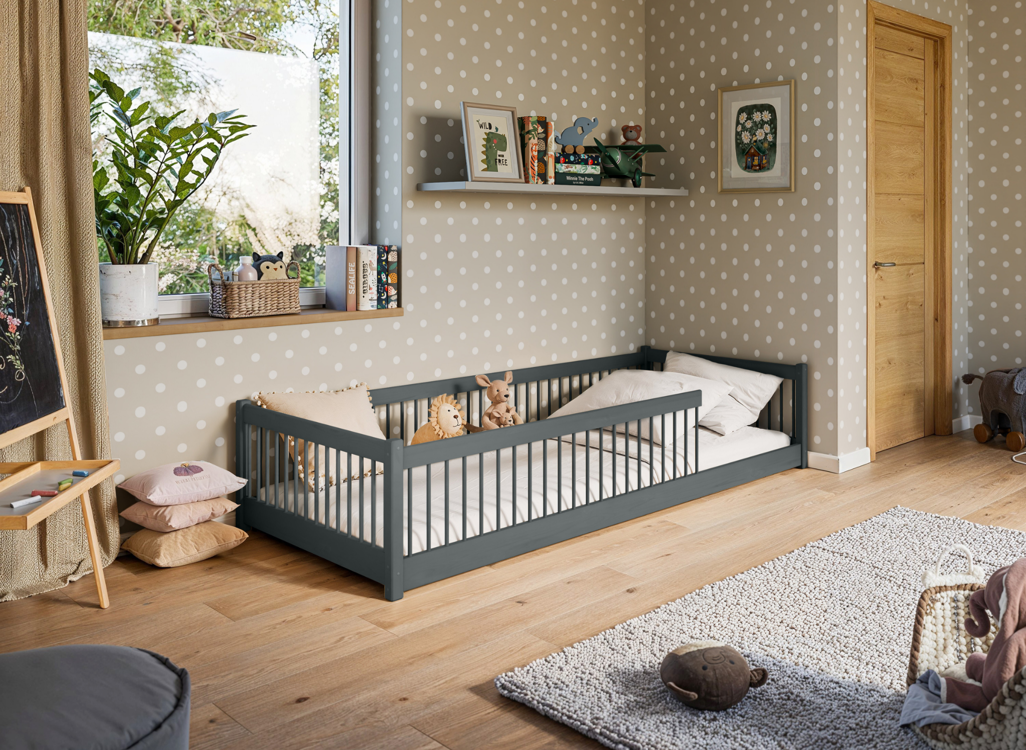 PEDRO 80x180 graphite Montessori floor bed for children Lano Furniture