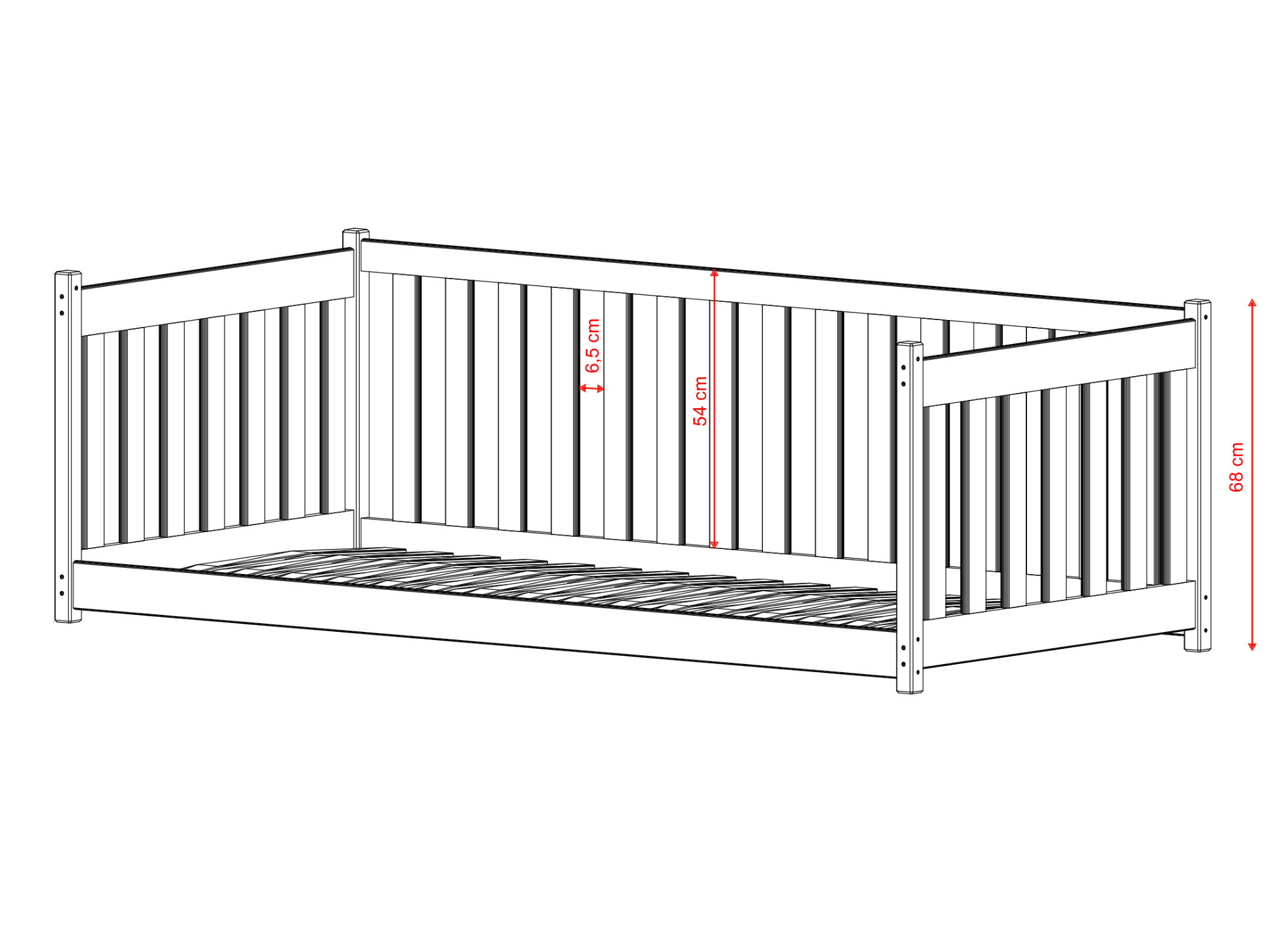 A comfortable and solid CONCEPT children's bed is the basis. It is the foundation for a deep, healthy, and regenerating sleep. However, one more element is needed for this puzzle. It's a comfortable mattress properly selected for the child's needs. Don't know how to choose one? Take a look at the tab: HOW TO CHOOSE A MATTRESS or contact us. What makes the CONCEPT children's bed so safe? It is, first and foremost, the highest quality material – pine wood. Thanks to this raw material, the bed is extremely solid and stable. It is not afraid of scrapes, bumps, or other daily challenges. You can be sure that thanks to the appropriately designed wooden guard rails, the child is fully protected during sleep and during playtime in the day. All the corners of the bed are rounded, which prevents accidental scraping of the child's delicate skin.