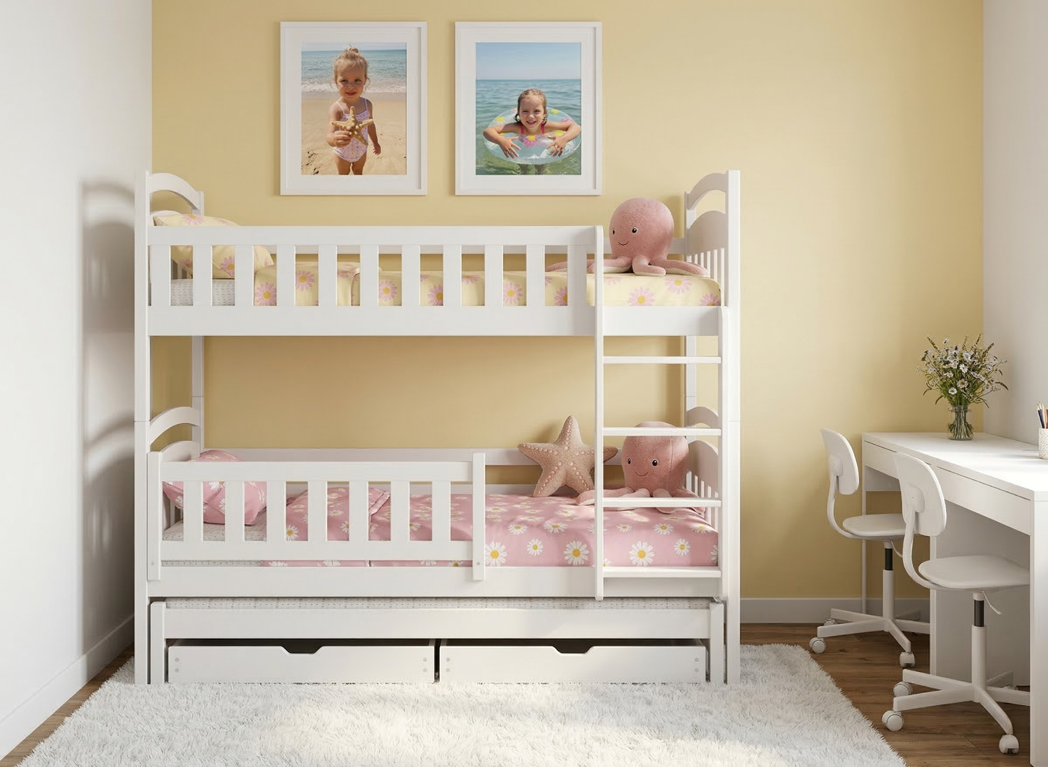 The spacious drawers in the white BLANKA bunk bed are the best friends of tidiness in a children's room