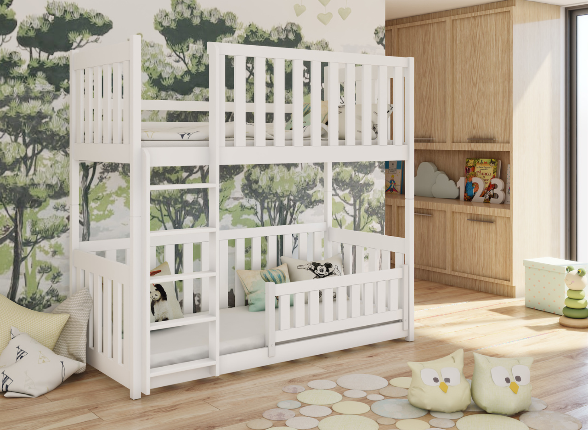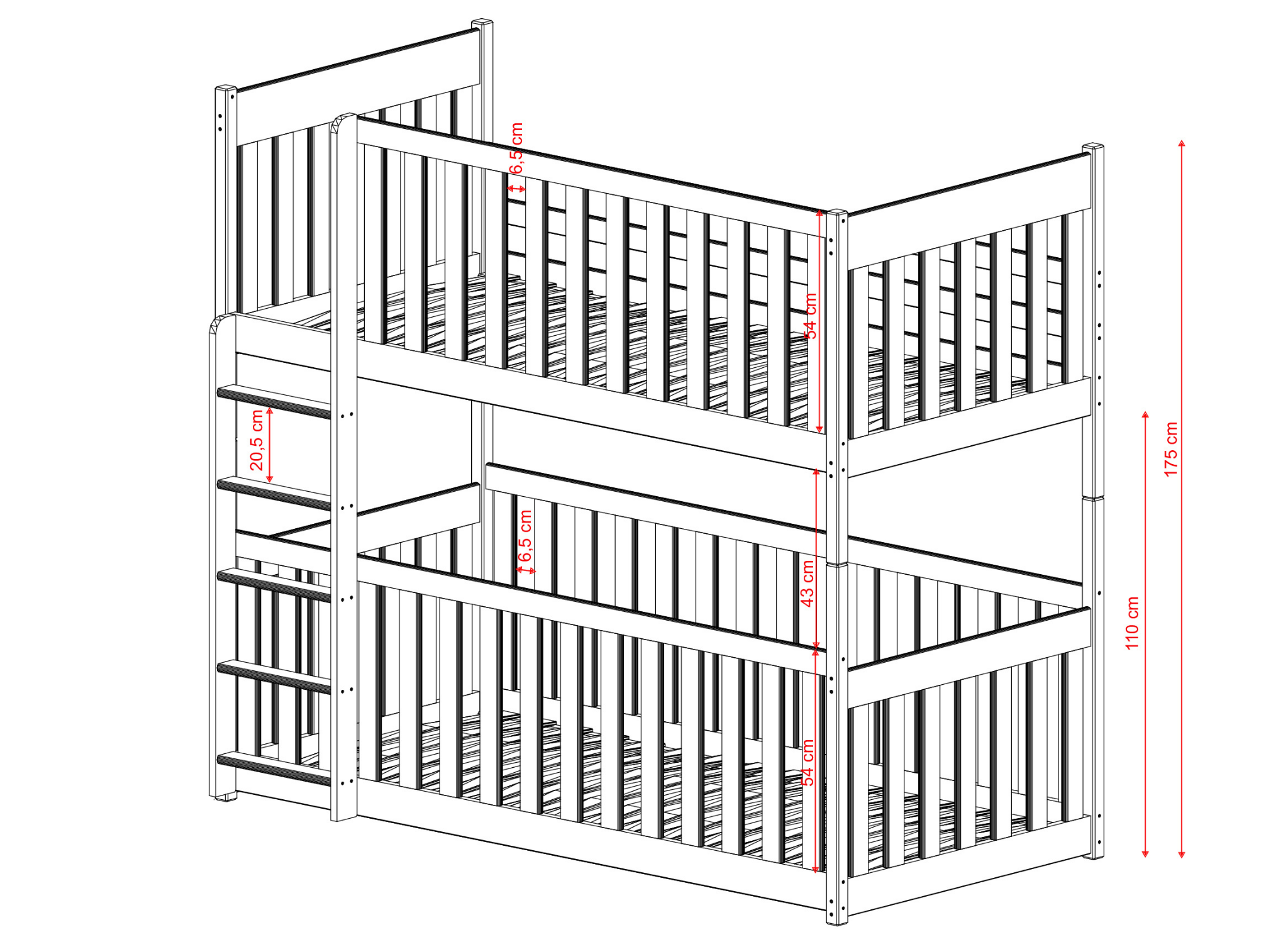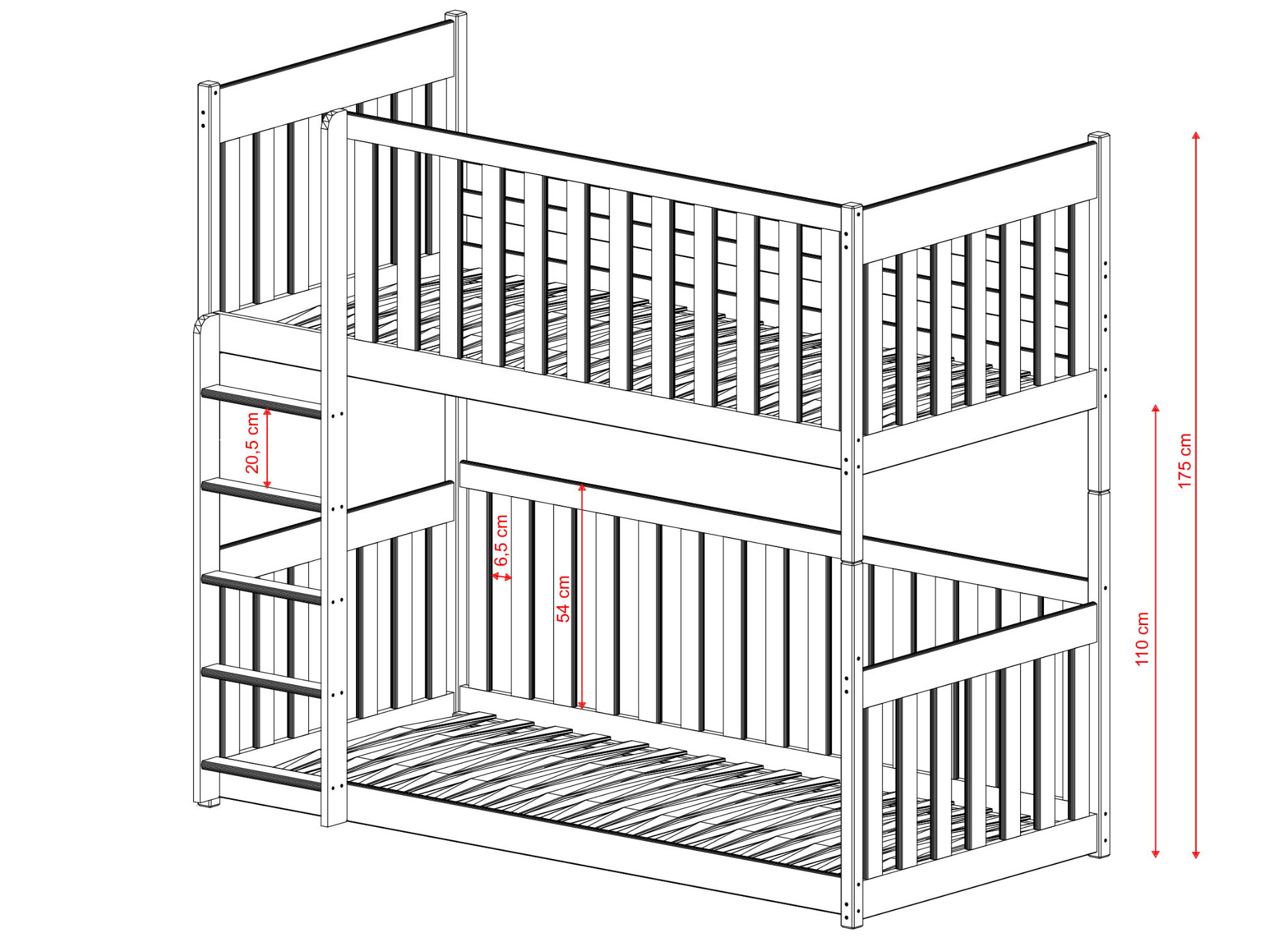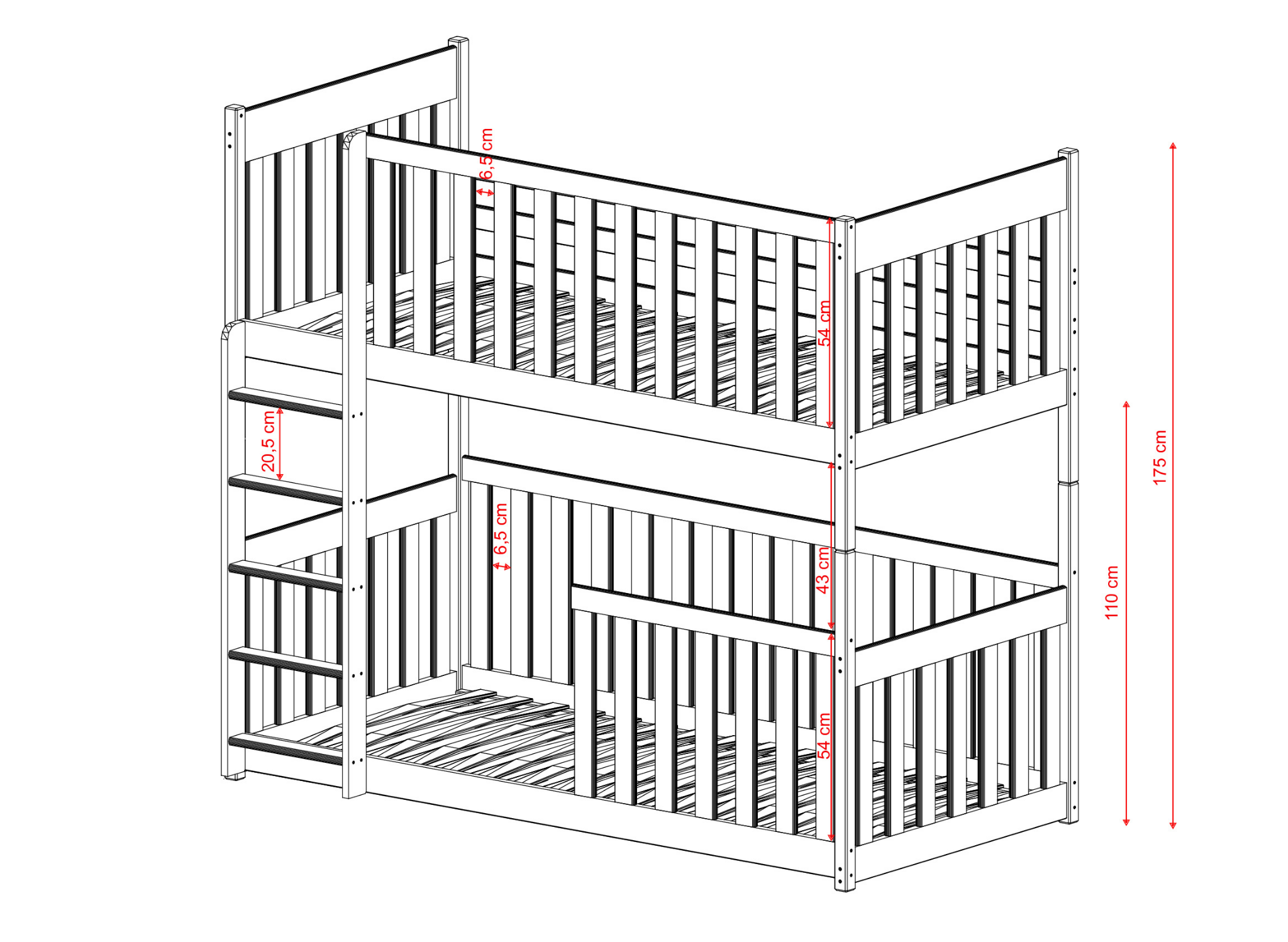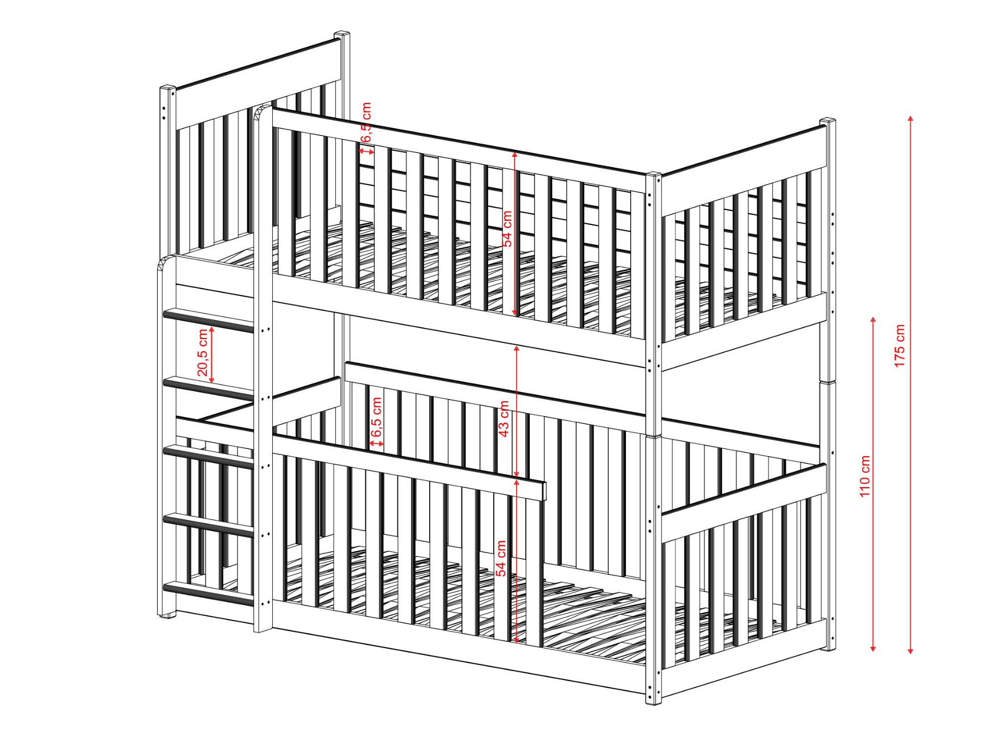 Designing a child's room is one of the biggest challenges for many parents, but the KONRAD bunk bed will make this task much easier. This is a floor cot bed that's perfect for younger children. Its classic design fits in perfectly with all types of interiors. The frame of the KONRAD bunk bed is made entirely of pine wood, and its durability is increased by an anti-allergenic, water-based paint. At Lano Furniture, we care about your children's safety, which is why all our KONRAD bunk beds are produced to the highest standards.