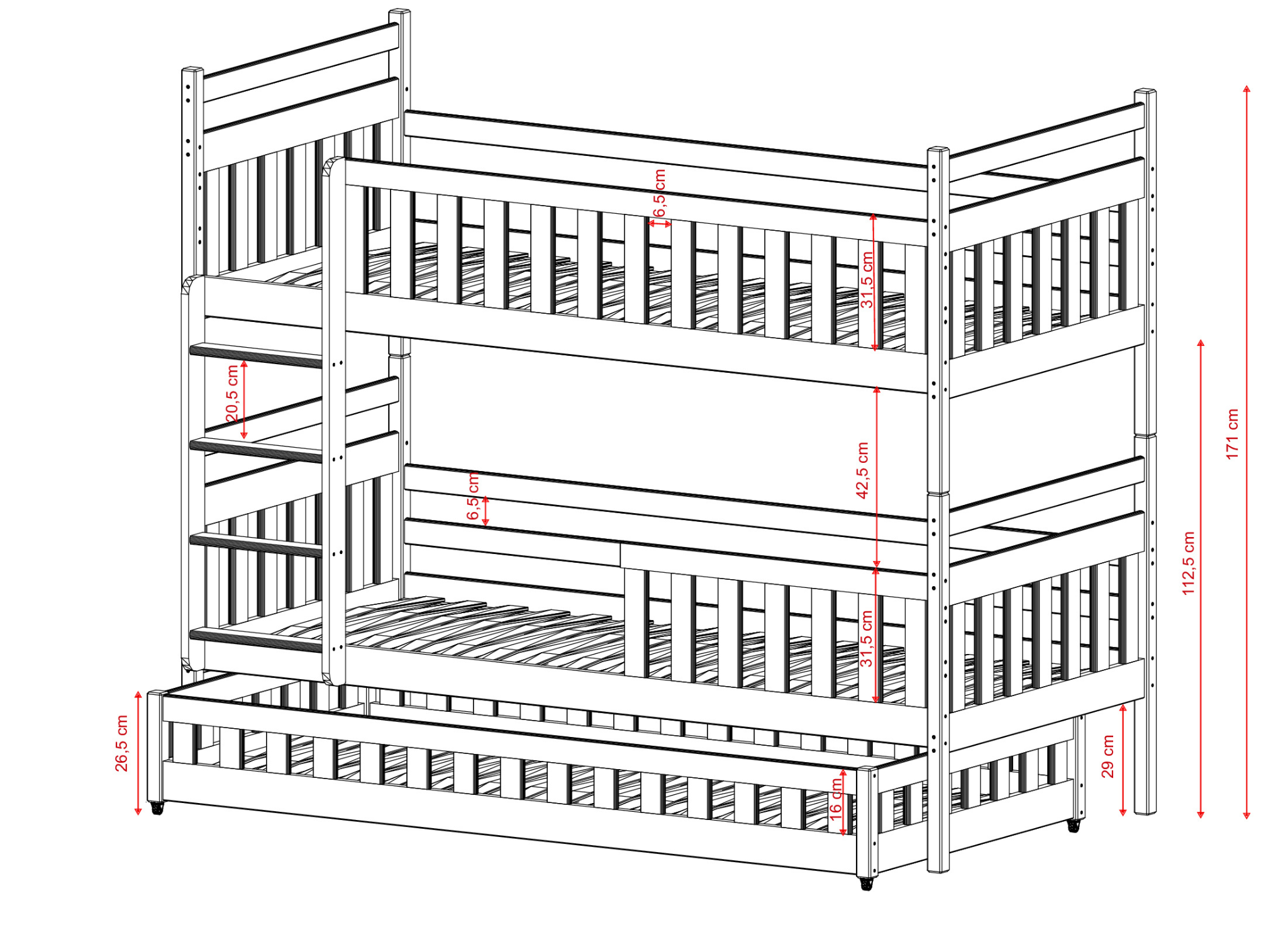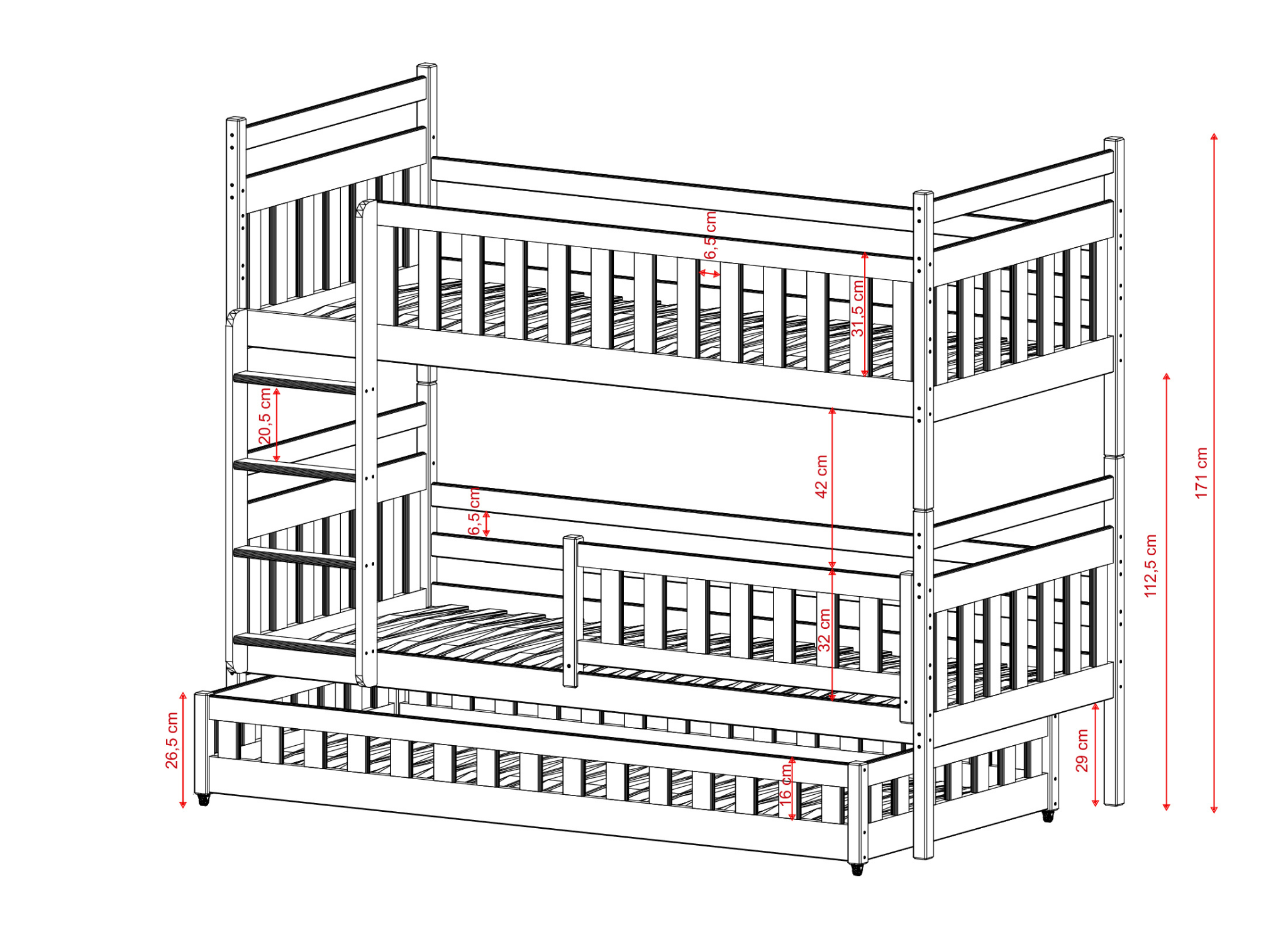 | Bed height | 171 cm |