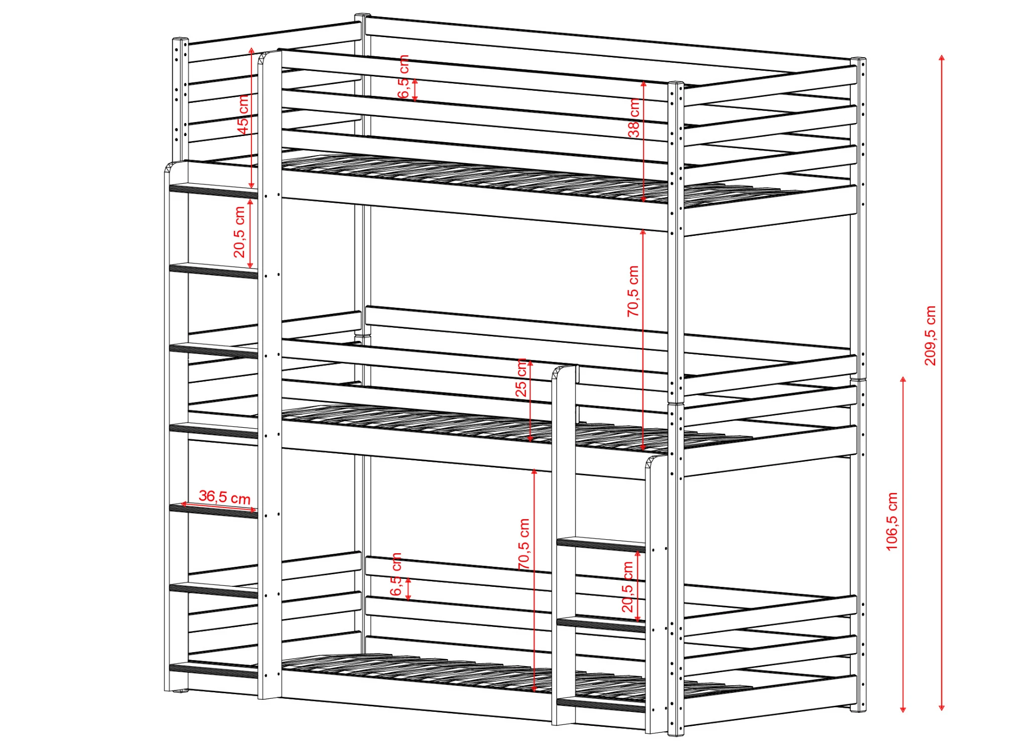 The TED bunk bed from Lano Furniture certainly offers many opportunities for children to play. In addition, the bunk bed is safe and its construction will ensure that nothing happens to your child even during sleep. If you don't need 3 places to sleep, the kids can use one of them as their private base. Do you expect the highest quality? The choice is simple – Lano Furniture.